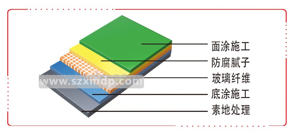 ![]() 1. 基礎(chǔ)處理:依基礎(chǔ)狀況做好打磨、修補、除塵; 2. 底涂施工:將樹脂按適當(dāng)比例加入促進劑和固化劑,均勻刮涂,增強表面附著力; 3. 鋪玻璃纖維布:將玻璃纖維布平整放置,全面鋪設(shè)樹脂一道; 4. 環(huán)氧膩子:用環(huán)氧雙組份加入適量膩子粉,用鏝刀將其均勻涂布多道; 5. 面涂施工:將調(diào)配好的面涂用鏝刀或滾筒均勻涂布, 完工后整體地面光亮潔凈,達到重防腐效果。 ![]() ![]() | ![]() 試驗項目指標(biāo)壓縮強度≥130變曲強度≥230拉伸強度≥100沖擊韌性≥270吸水率≤0.2收縮率≤0.2檸檬酸24h 不變色 不變化果汁24h 不變色 不變化可樂24h 不變色 不變化番茄醬24h 不變色 不變化食用醋24h 不變色 不變化70﹪H2SO424h 不變色 不變化 |